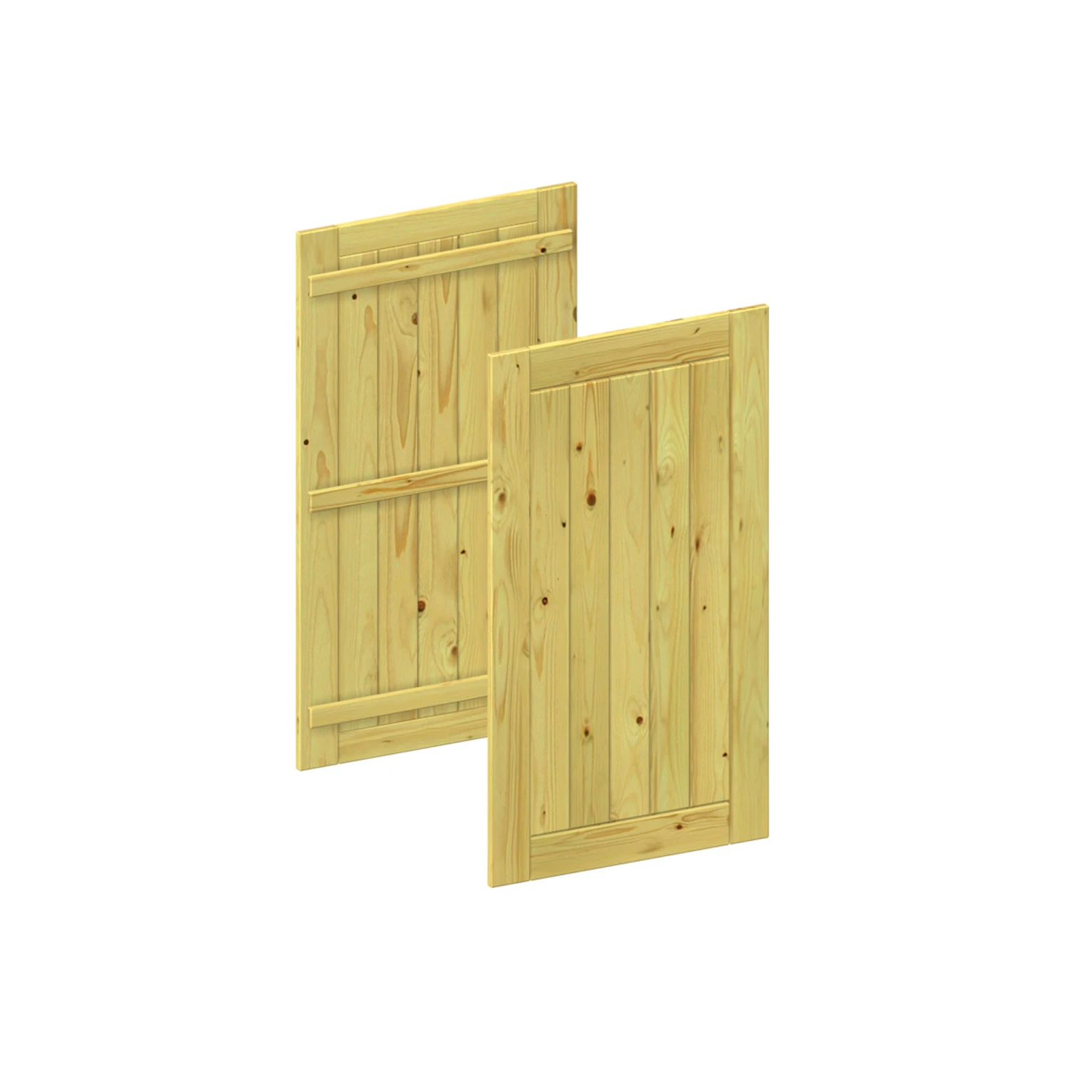 Die BINTO Erweiterungsverkleidung umfasst Tür und Rückwand aus kesseldruckimprägnierten Fichtenholz. Die Oberfläche ist angenehm glatt gehobelt und alle Kanten sind gefast.