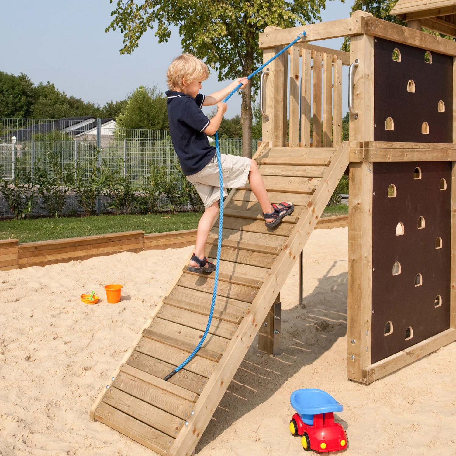 Der Klettersteg ‚Winnetoo Pro‘ ist die perfekte Ergänzung für die Serie ‚Winnetoo Pro‘ Kinderspielgeräte. Damit kannst du den Spielbereich beliebig erweitern und immer wieder für ein neues Spielvergnügen sorgen. ‚WINNETOO PRO‘ ist nach der DIN EN 1176 Norm gefertigt, welche die Anforderungen für Spielgeräte im öffentlichen Spiel- und Wohnumfeld regelt.