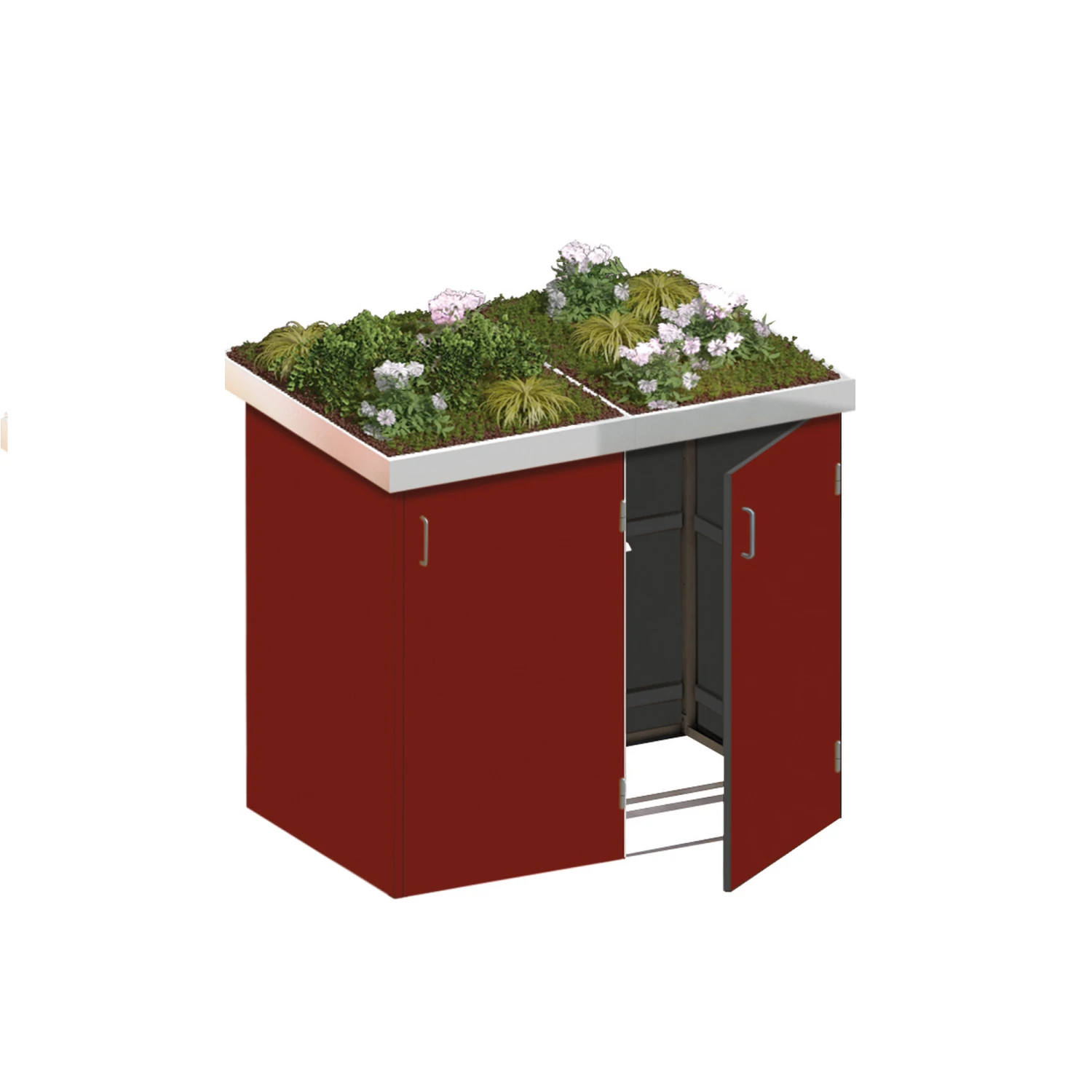 BINTO SYSTEM – schöner und variabler lassen sich Mülltonnen nicht verstecken: Wähle aus verschiedenen Materialien und Farben oder stelle dir deinen individuellen Materialmix zusammen. Das Grundgerüst aus verzinktem Stahl ist bei allen Design-Varianten gleich. Du kannst jederzeit erweitern oder die alte Verkleidung durch eine neue ersetzen. Dazu wählst du entweder Klappdeckel oder die Edelstahl-Pflanzschale. In die BINTO Boxen passen alle gängigen Tonnen bis 240 Liter und mit einer Einstellbreite von 63,3 cm.