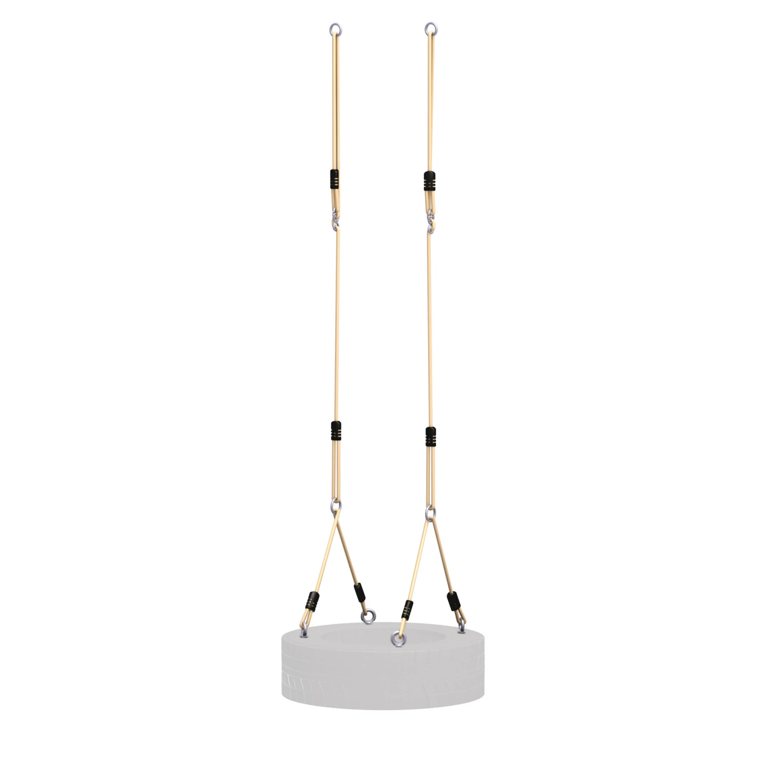 Das Seilset ‚Winnetoo‘ ist für die Reifenschaukel geeignet. Es hat Ringe und Stellachten aus verzinktem Stahl. Es ist höhenverstellbar und bis 140 kg belastbar. Für die Montage am Schaukelbalken benötigst du zwei Schaukelhaken.