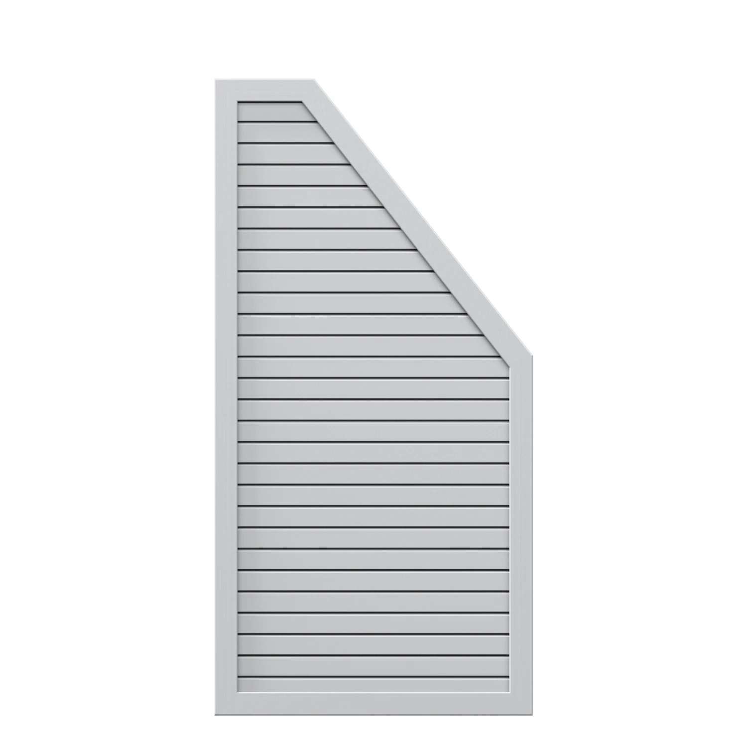 Bitte achten Sie auf dieses typische Merkmal: die Rhombusform der Profile führt den Blick und das Licht in unterschiedliche Richtungen. Das heißt, von der einen Seite des Zaunelements wird etwas Durchblick nach unten gewährt. Von der anderen Seite ist die Sicht nach oben möglich.