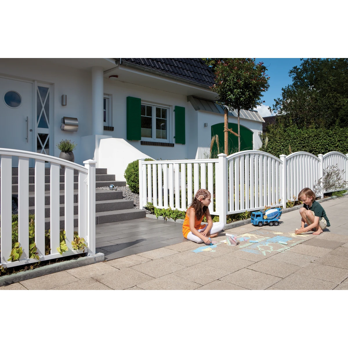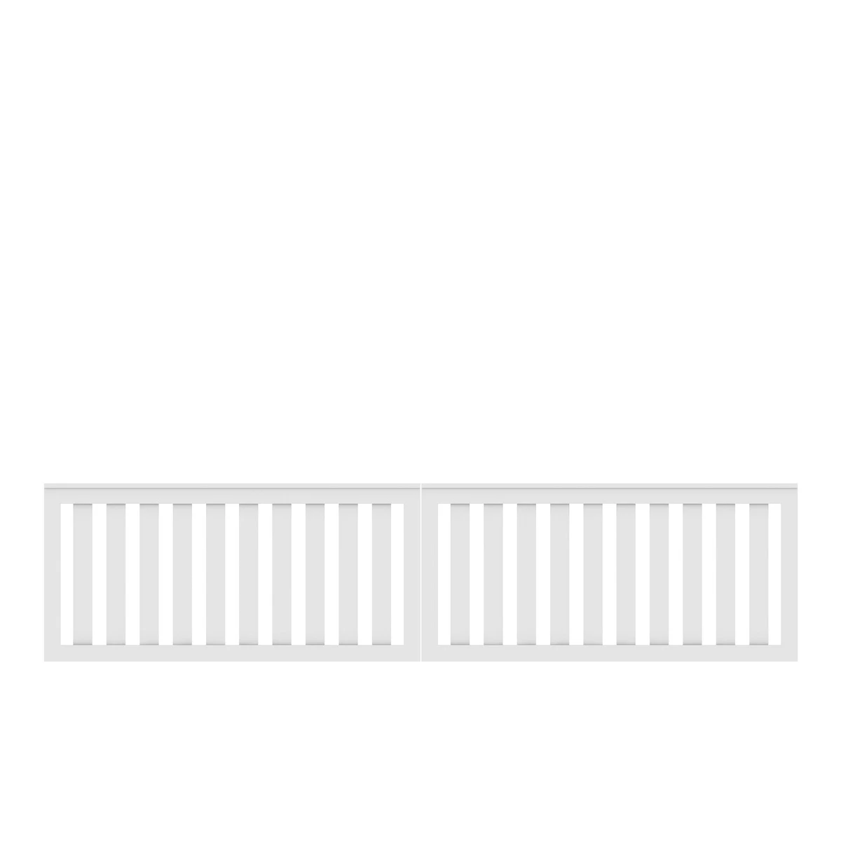 Extrabreites zweiflügeliges CLEO Doppeltor Maße 310 x 85 cm WICHTIG: Stabilisieren Sie immer beide Torpfosten mit den LONGLIFE Torpfostenverstärkungen! Das CLEO Tor wird inklusive einer werkseitig aufgeklebten Aufsatzleiste aus Kunststoff geliefert. Hochwertiger Fenster-Kunststoff, weiß Rahmen 48 x 68 mm Profile 28,5 x 82,5 mm