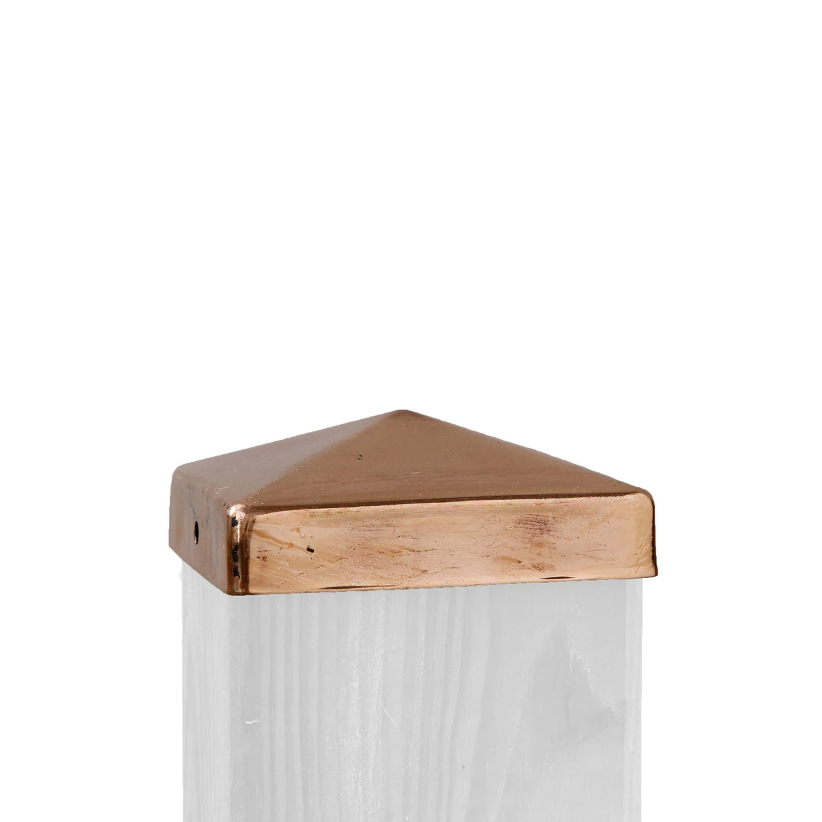Die Kupfer-Pfostenkappe schützt die empfindliche Kopfseite (Hirnholz-Seite) des Pfostens. Ohne Pfostenkappe kann Regenwasser eindringen und den Pfosten von innen heraus schädigen. Die Pfostenkappe in Pyramidenform verwenden Sie auf den 9 x 9 KDI Standard- oder KDI SELECT Pfosten.