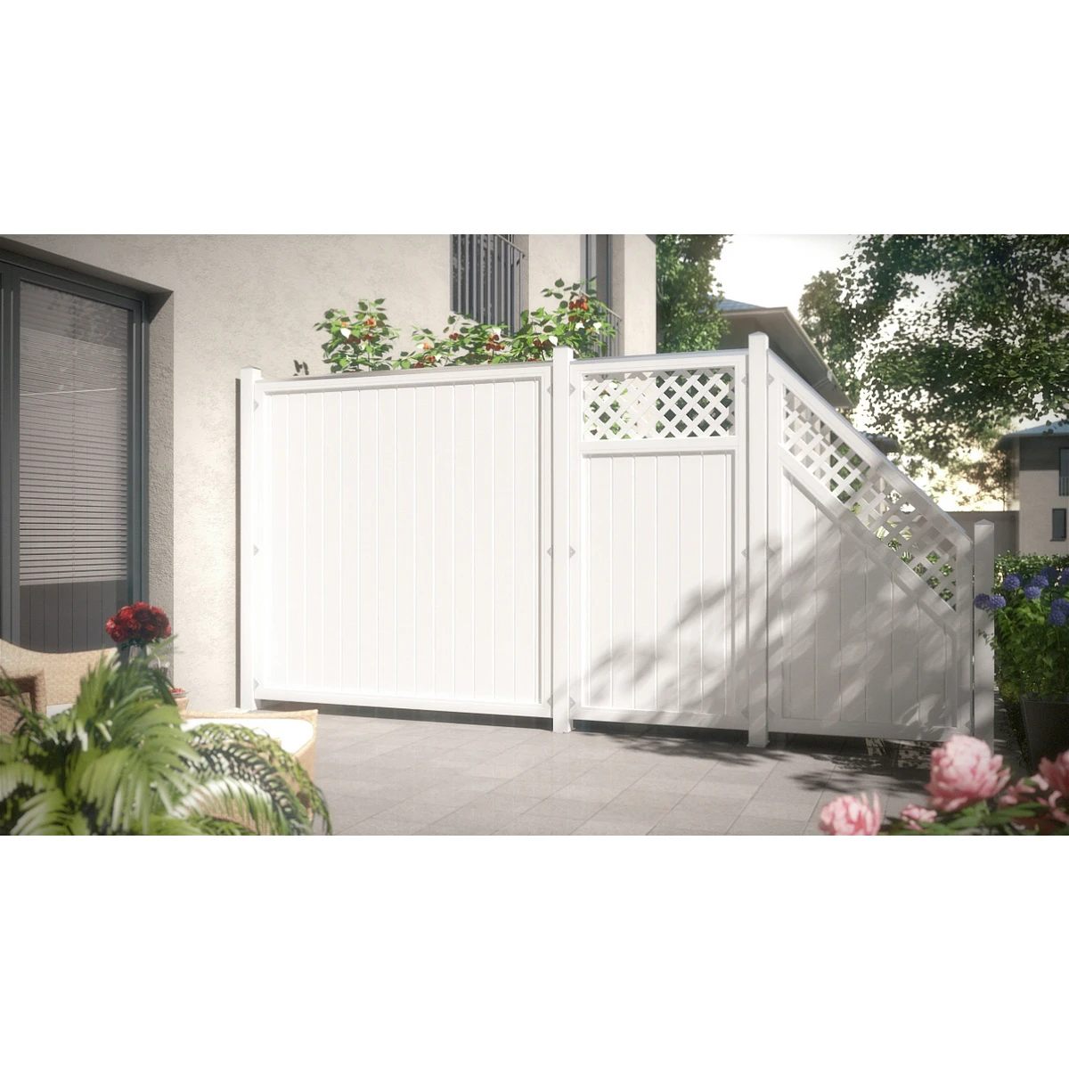TraumGarten Sichtschutzzaun Kunststoff Weiss „LONGLIFE RIVA“ Mit Gitter Anschluss
