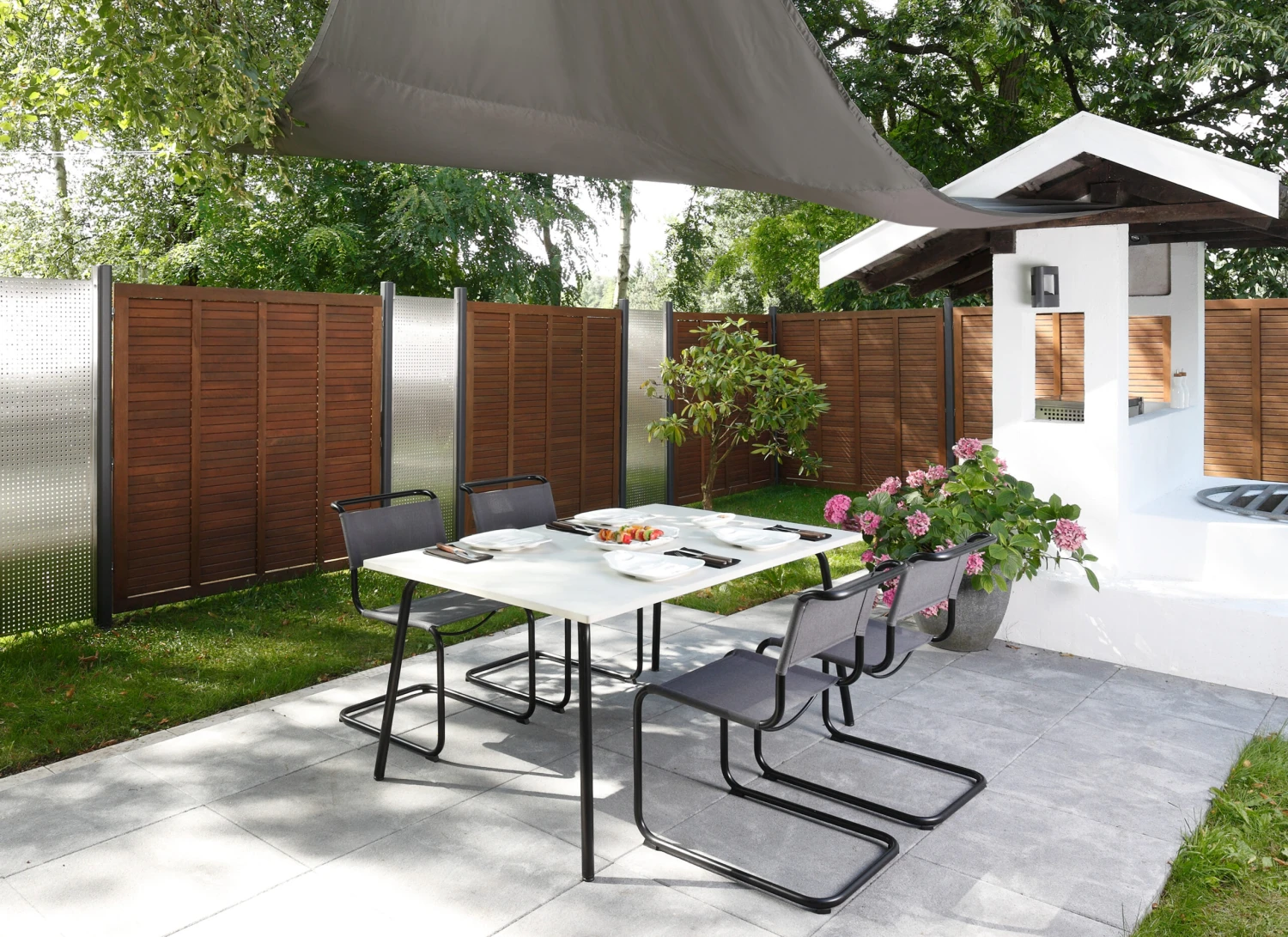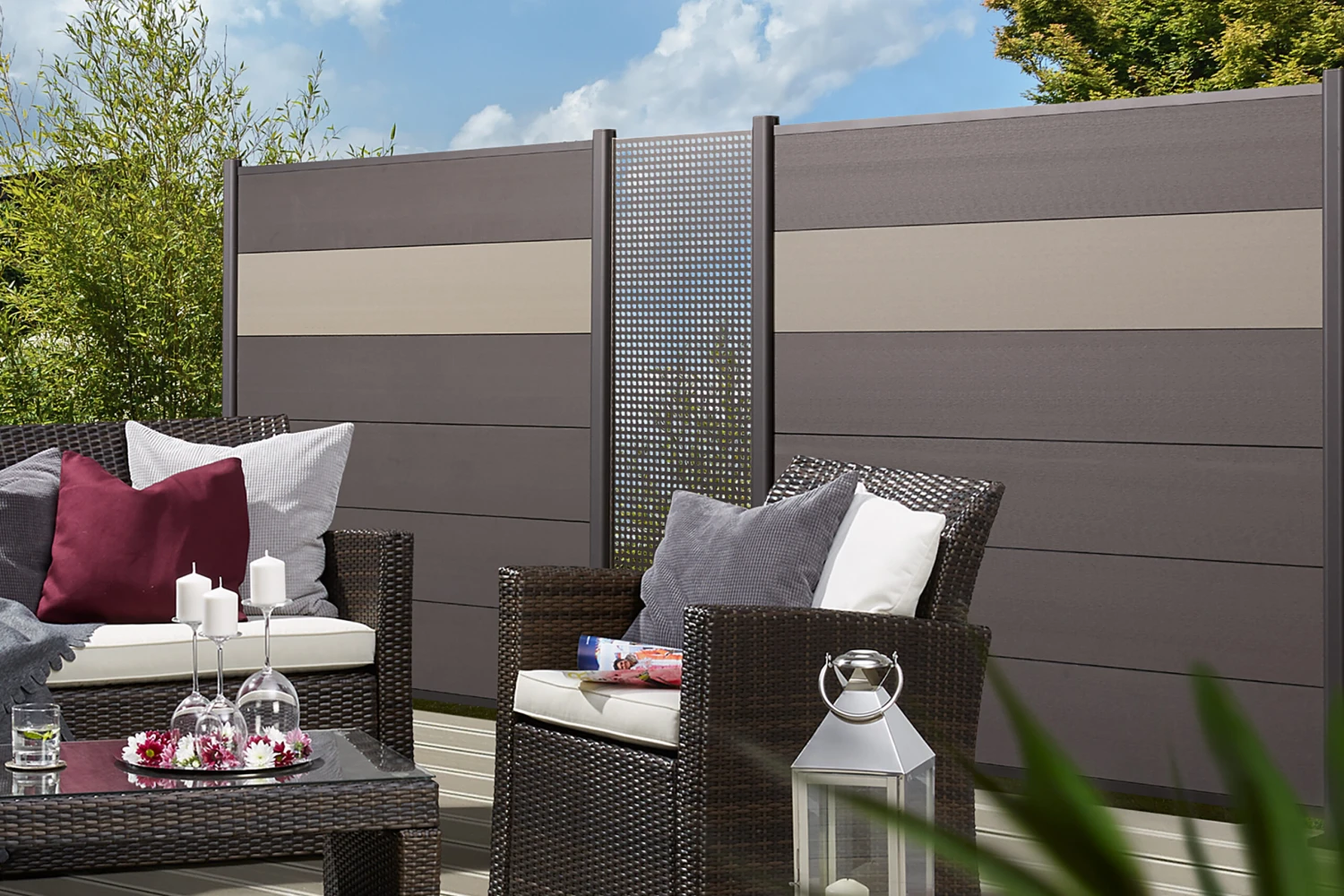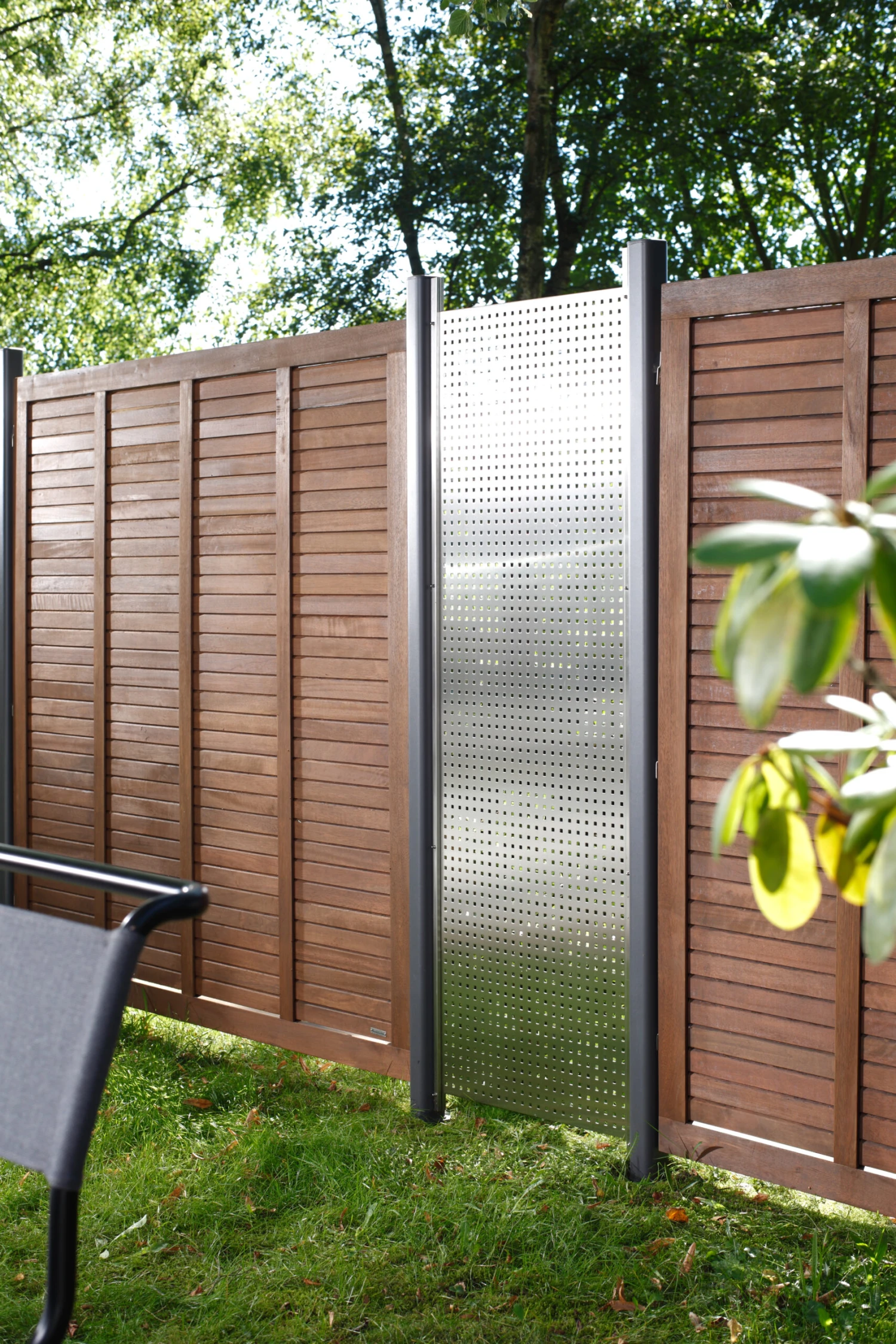Das TraumGarten SYSTEM Designgitter GAMMA – passend zu allen TraumGarten SYSTEM Zaunanlagen sowie Holzzäunen.