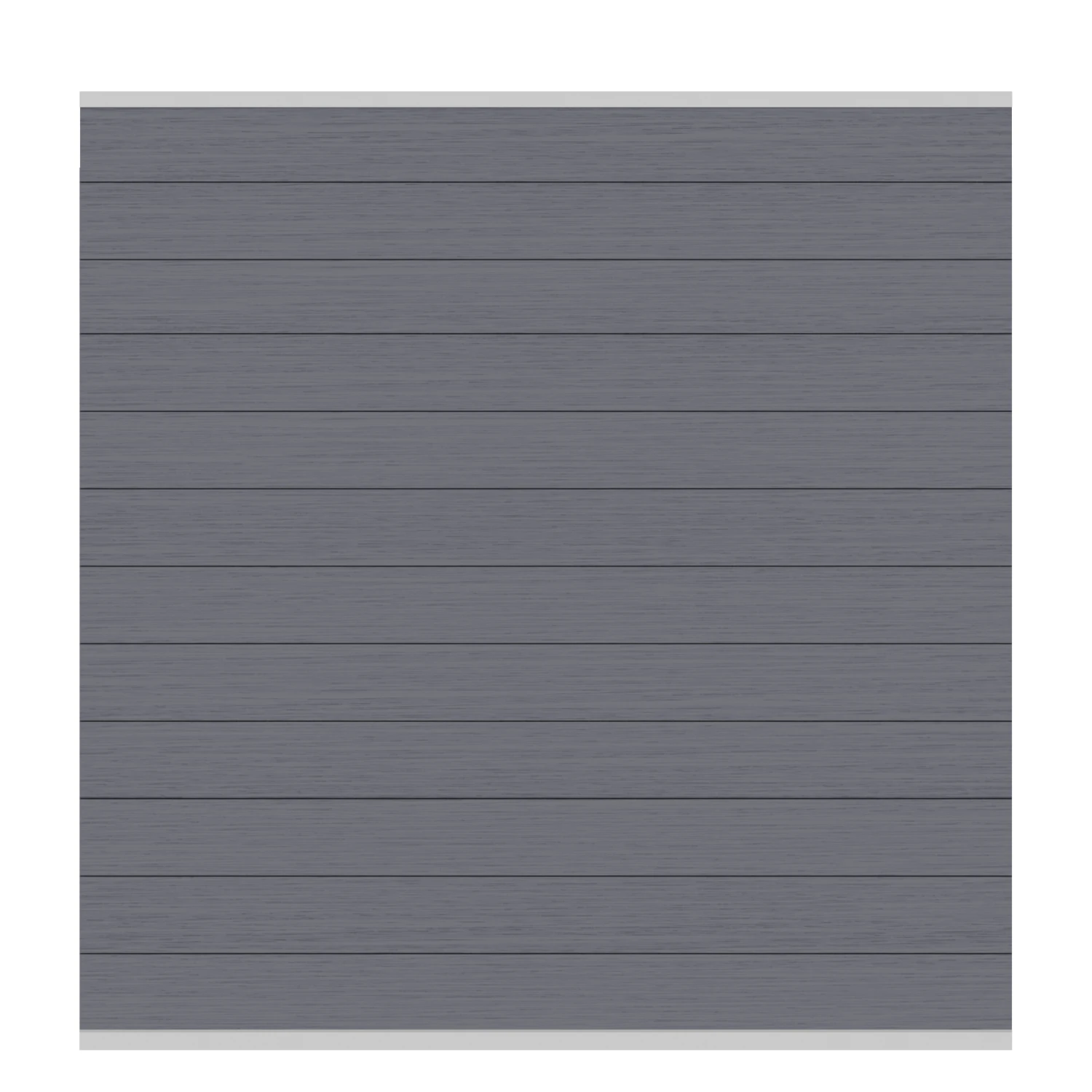 Das TraumGarten System WPC Classic Zaun-Set – bestehend aus 12 abwaschbaren Einzelprofilen (2 Sichtseiten mit unterschiedlichen Design-Nuten) und 2 Profil-Abschlussleisten (oben/unten) aus Aluminium.