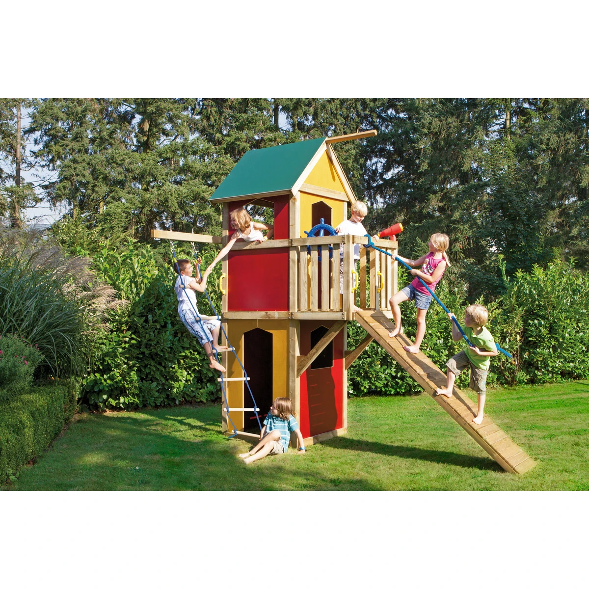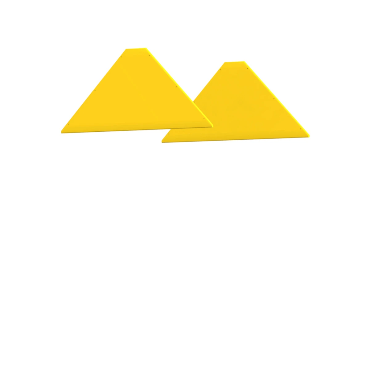 Das pflegeleichte Giebel-Set besteht aus verleimter Birke mit glatten, farbig beschichteten Oberflächen. Die gelben Multiplex-Platten passen zum grünen, pflegeleichten WINNETOO Dach und zum klassischen Holzdach. Die verwendete Farbe ist für Kinderspielgeräte geeignet und sehr gut umweltverträglich. Die starke Farbintensität im Auslieferungzsustand wird durch die UV-Strahlung etwas gemildert. inklusive Befestigungsmaterial