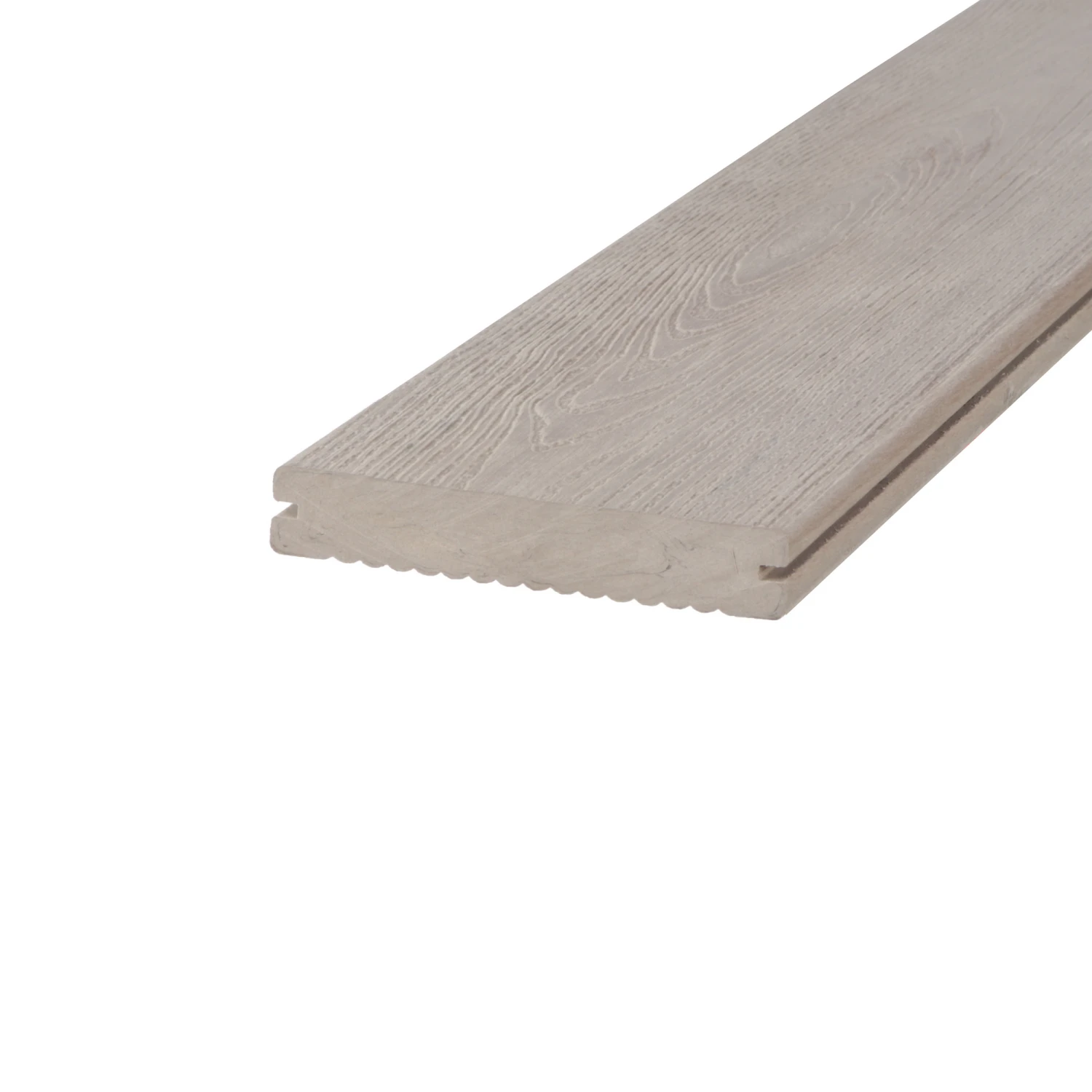 Die Terrassendiele ‚DreamDeck BiColor‘ aus WPC-Vollprofilen eignen sich aufgrund ihrer Abmessungen und in Verbindung mit der flachen Unterkonstruktion besonders gut für die Verlegung bei geringen Aufbauhöhen, z. B. Balkonen oder kleineren Terrassen. Durch das Vollprofil lassen sich auch runde oder geschwungene Terrassenflächen einfach gestalten. WPC ist ein Materialmix aus Naturfasern und Kunststoff, der sehr eindruckhart und daher ideal für den Einsatz im Außenbereich ist. Durch die speziellen Verlegeclips können die Dielen zudem mit einer von oben unsichtbaren Verschraubung verlegt werden. Es kann zwischen der fein gerillten und der geprägten Oberfläche ausgewählt werden.