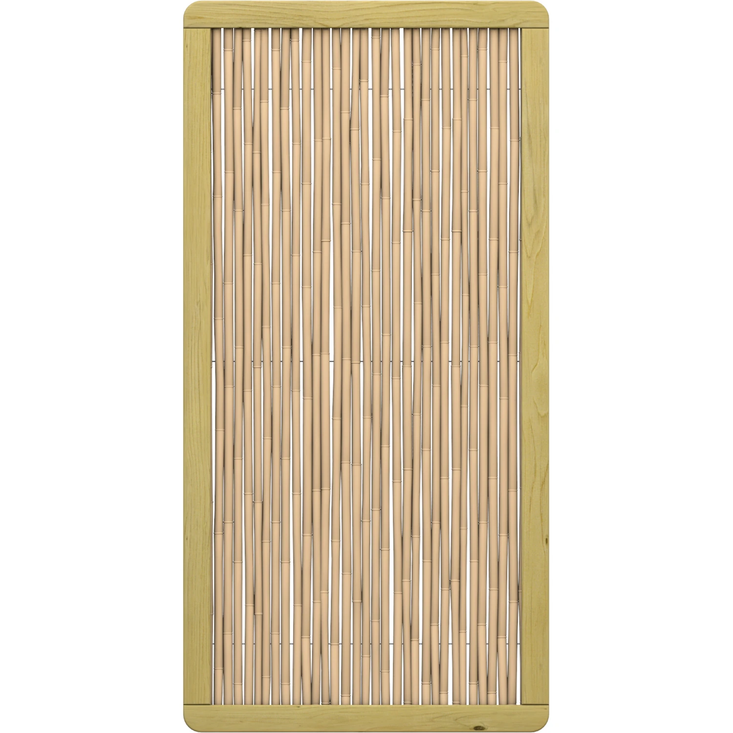 Der edelstahlverschraubte Rahmen mit gerundeten Ecken ist druckimprägniert und mit ca. 20 mm starken Bambusstäben gefüllt. Der gegen Schimmel vorbehandelte Bambus wird mit 3 Metallstangen zusätzlich im Rahmen fixiert und zusammen gehalten. Bambus und Rahmenholz sind Naturprodukte und freuen sich über besondere Pflege. Wir empfehlen BAMBU regelmäßig mit einem farblosen UV-Schutzöl zu behandeln. Die Behandlung wirkt schmutz- und wasserabweisend, beugt Pilz- und Schimmelbildung vor und schützt vor UV-Strahlung. BAMBU kann mit Elementen der Holzzaunserie XL kombiniert werden.