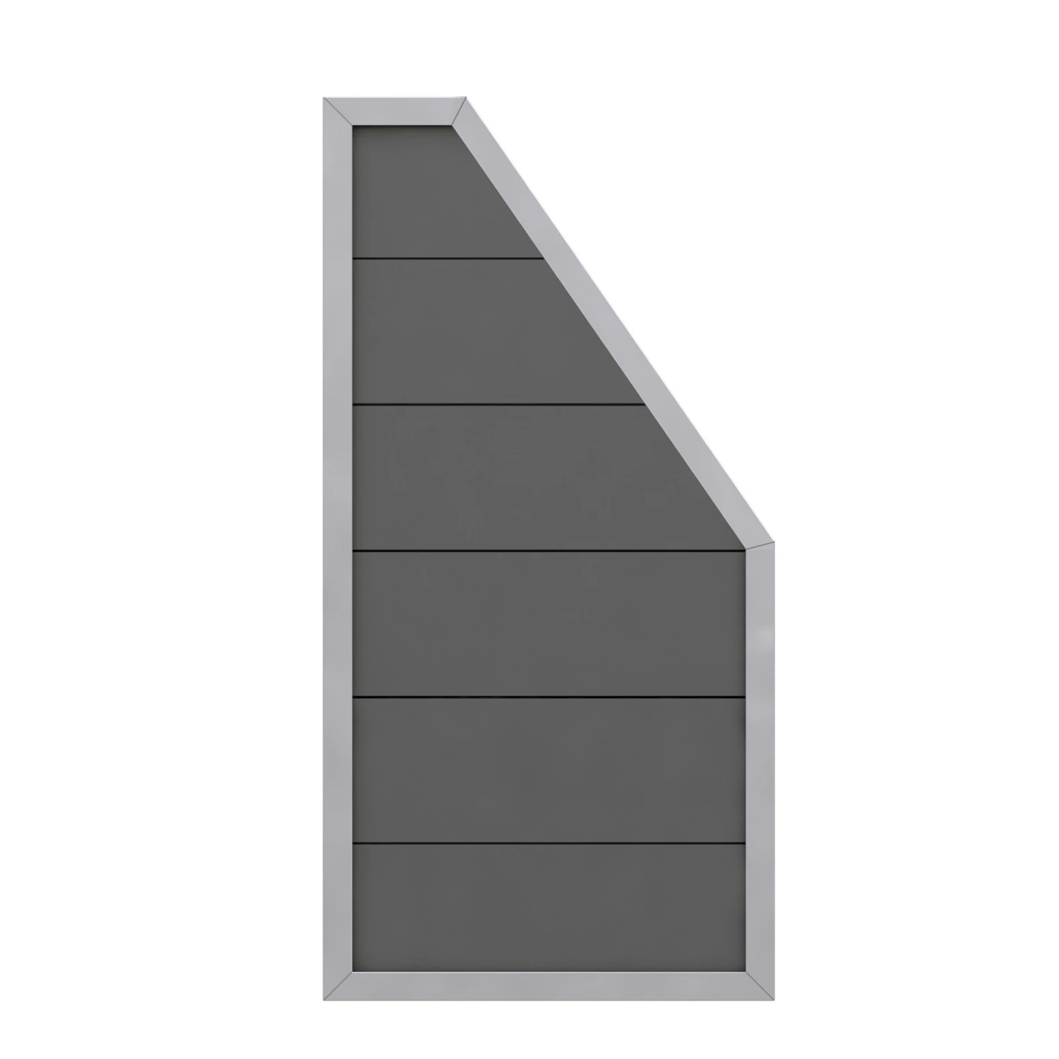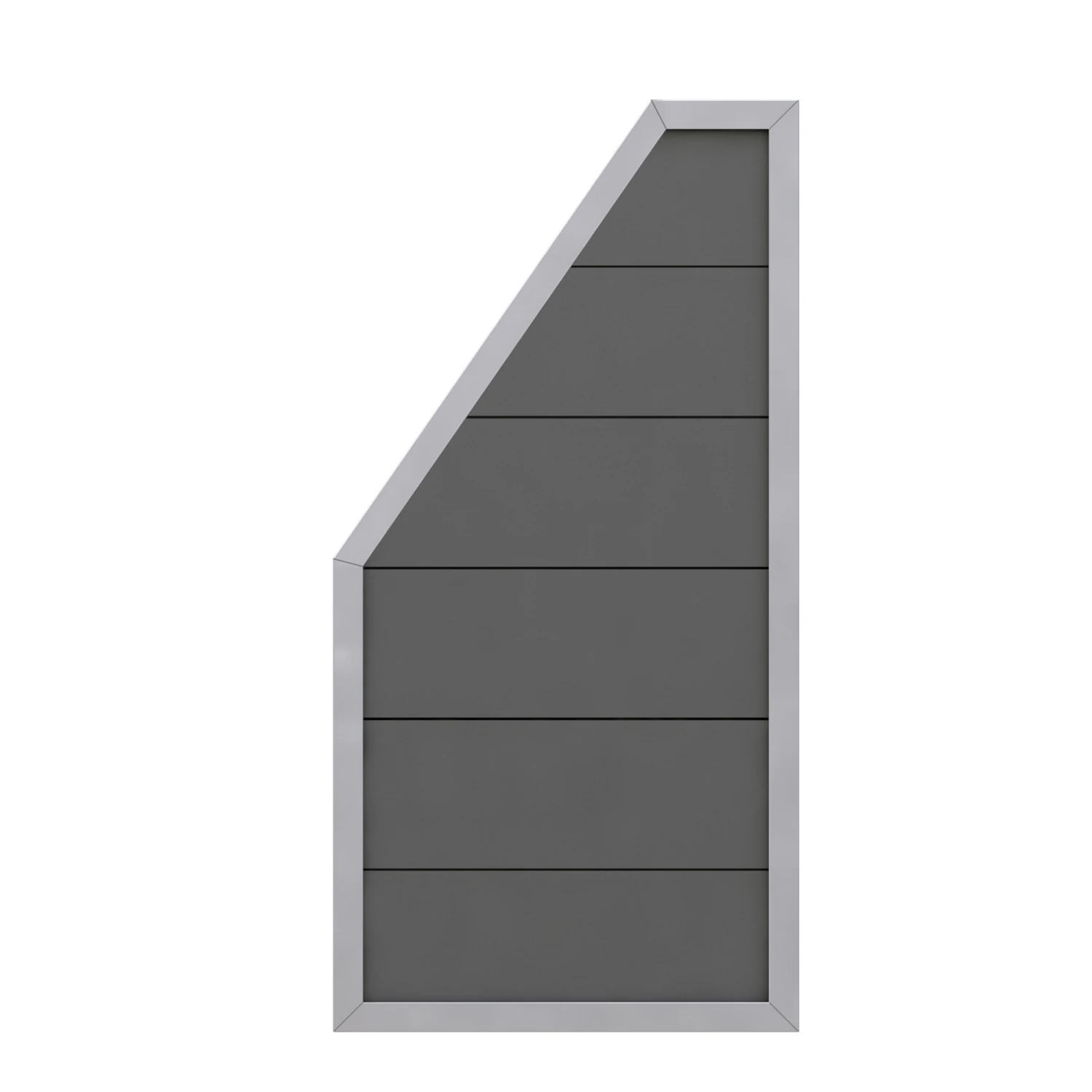 Der Sichtschutzzaun ‚Design WPC Alu‘ bietet modernes, geradliniges Design kombiniert mit pflegeleichten und wetterfesten Materialien. Die blickdichten Elemente aus 20 mm starken Nut und Feder Profilen sind in einen markanten Aluminium Rahmen eingefasst. Das Grundmaterial WPC ist eine Mischung aus Kunststoff und Naturfasern. Der Kunststoff-Anteil sorgt für den pflegeleichten und langlebigen Außeneinsatz. Die natürlichen Bestandteile des WPC unterliegen Farbschwankungen und ergeben eine harmonische optische Erscheinung.