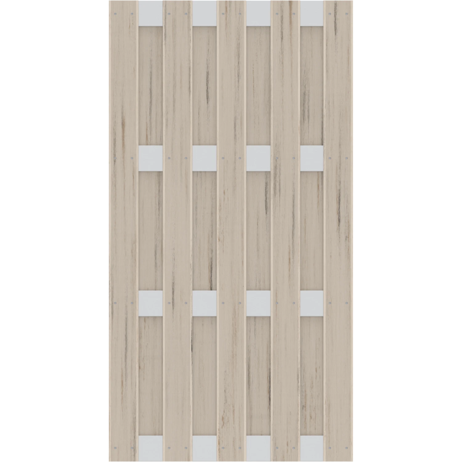 Der Sichtschutzzaun ‚Jumbo WPC‘ ist ein Klassiker unter den WPC-Zäunen, der Tradition, Eleganz und Technologie auf höchstem Niveau vereint. Das Grundmaterial ist eine Mischung aus Naturfasern und Kunststoff, das zu verwitterungsarmen und streichfreien Zaunelementen konstruiert wird. Das Zaunelement besteht aus senkrechten, fein geriffelten WPC Profilen und Querriegeln aus Aluminium.